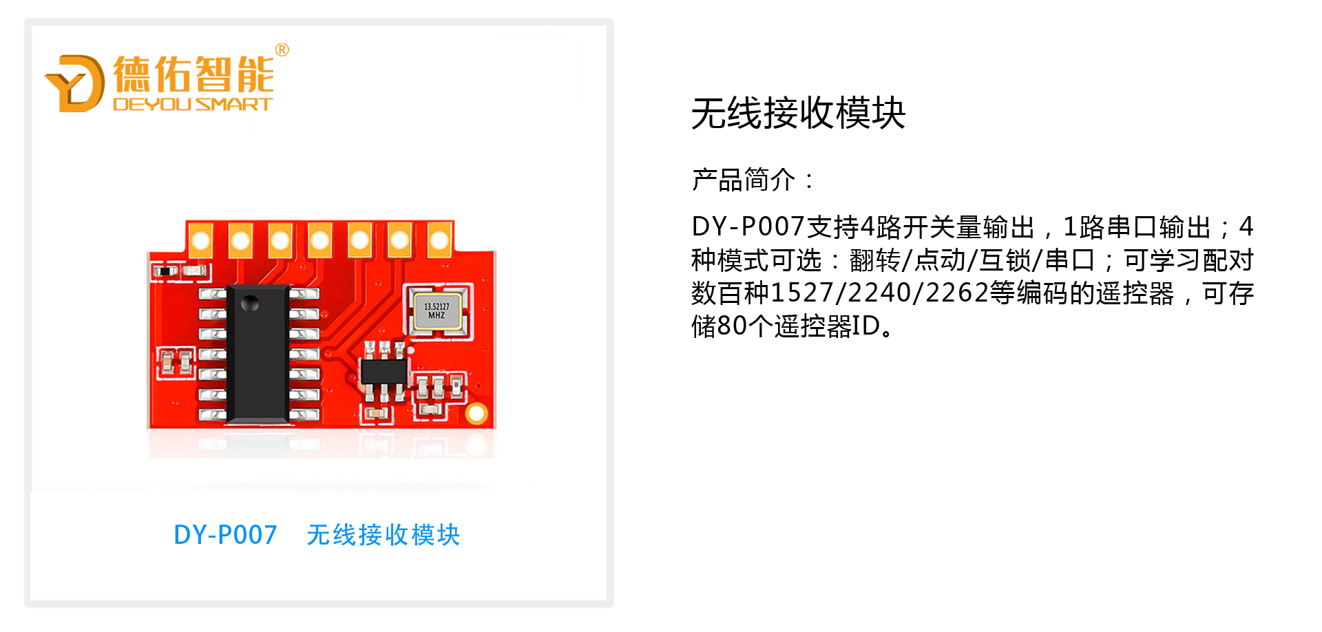 模块应用广泛,可用于无线门铃、智能家居、汽车遥控、无线灯控、遥控玩具、智能家电等
