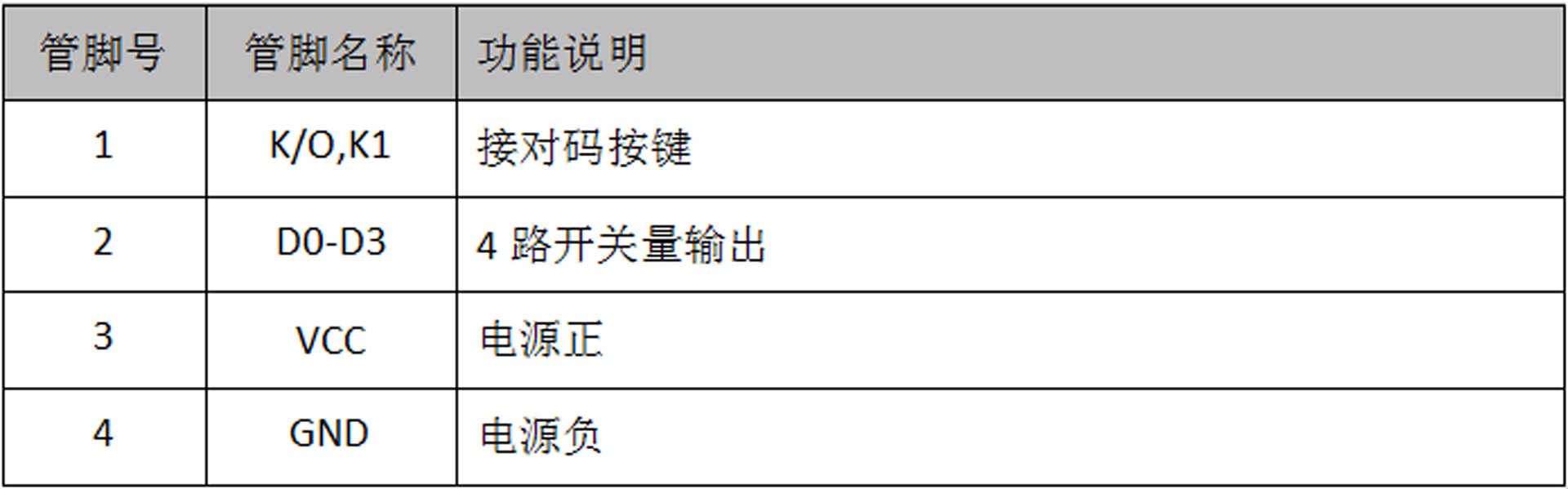 2.工作电流:4.7mA 3.灵敏度-110dBm 4.工作频率:315MHz/433.92MHz(可选) 5.可自适应遥控器 6.输出模式:开关量/串口